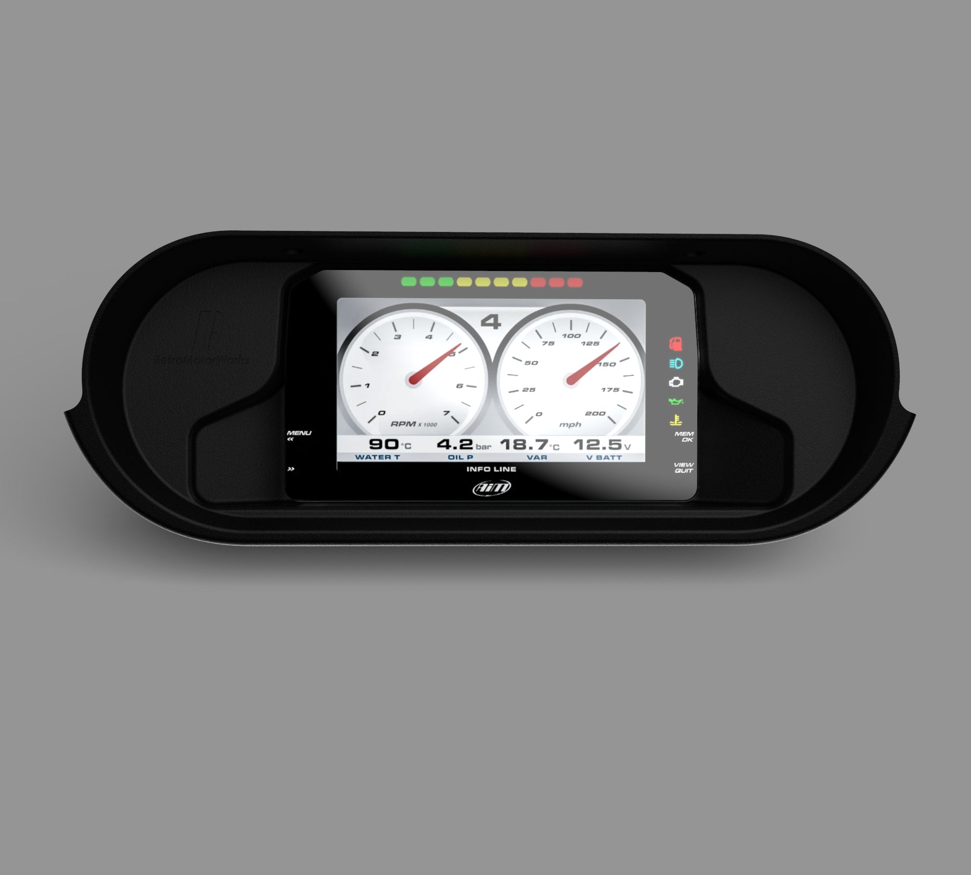 Give your classic Ford Escort MK1 a modern upgrade without sacrificing its vintage character. This custom-designed panel is specifically made to house the AIM MXP Strada digital display, offering a sleek, functional integration that respects the timeless design of the original dashboard.